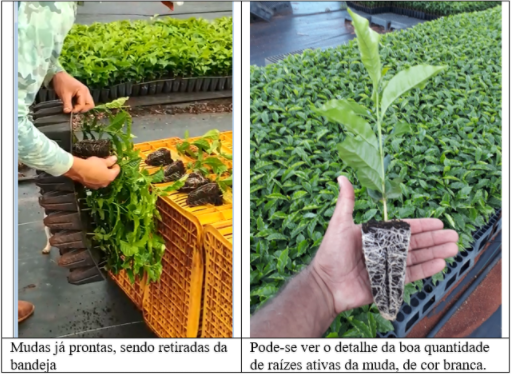 Foi desenvolvido, recentemente, um sistema com uso de bandejas plásticas, cujas células servem de recipientes para as mudas de café. Assim, contando com recipientes agrupados e distribuídos regularmente, a nova evolução necessária seria a de automatizar as operações de preparação das mudas. E isso foi possível, graças à adaptação de maquinário, semelhante ao que se utiliza para a produção de mudas de hortaliças, para uso com bandejas de células maiores e, também, de sementes grandes, como as de café.