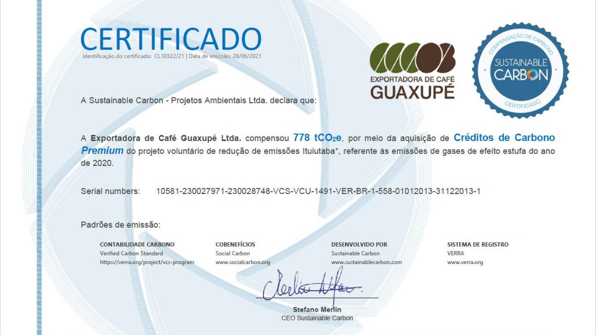 Após a adesão em 2019, realizou o primeiro inventário dos gases de efeito estufa que emitiu. Em 2020 as emissões totalizaram 778 tCO2e e foram integralmente compensadas em 2021, tornando a Exportadora de Café Guaxupé uma empresa neutra em carbono.