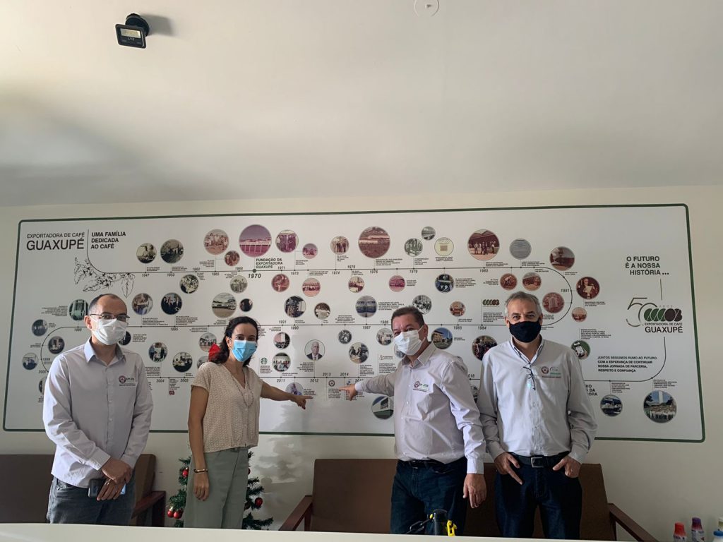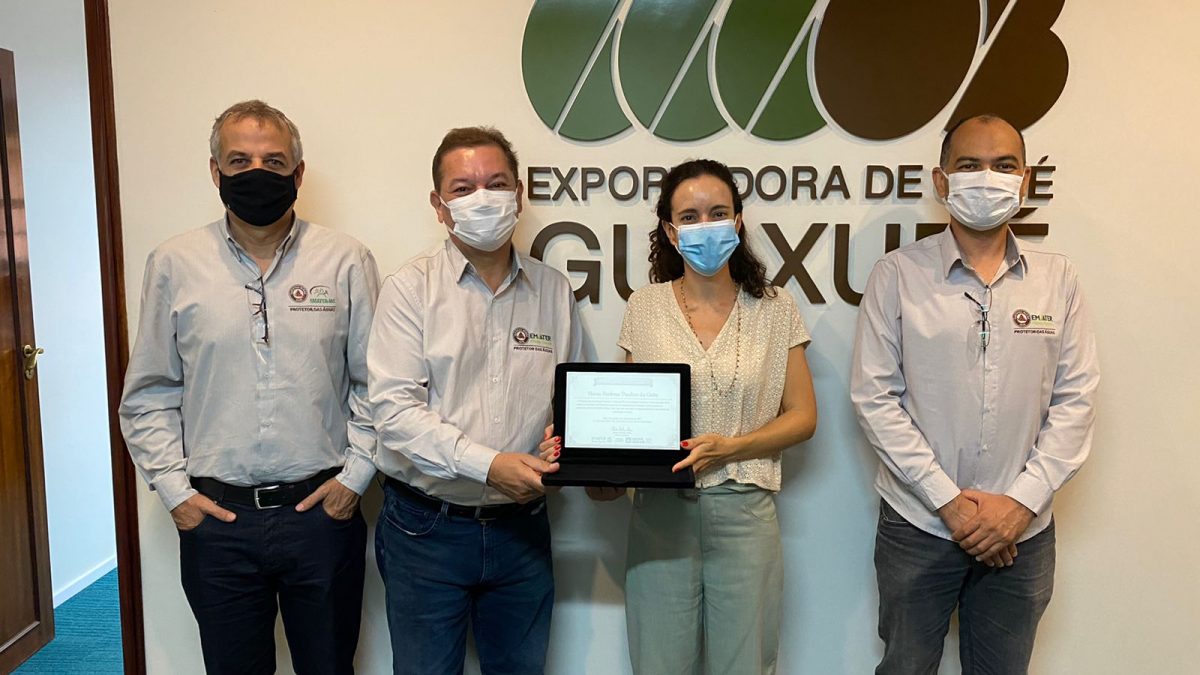 A parceria com a EMATER-MG MG continua firme, levando informação e inovação aos produtores, e hoje foi reconhecida através da homenagem “Parceiro Destaque”, concedida à diretora executiva da Exportadora de Café Guaxupé, Flavia Barbosa, pela Emater-MG, e entregue pelo seu diretor técnico, Gelson Soares Leme, juntamente com Bernardino Cangussu Guimarães, gerente do departamento técnico, e Willem Guilherme de Araújo, gerente regional Guaxupé.