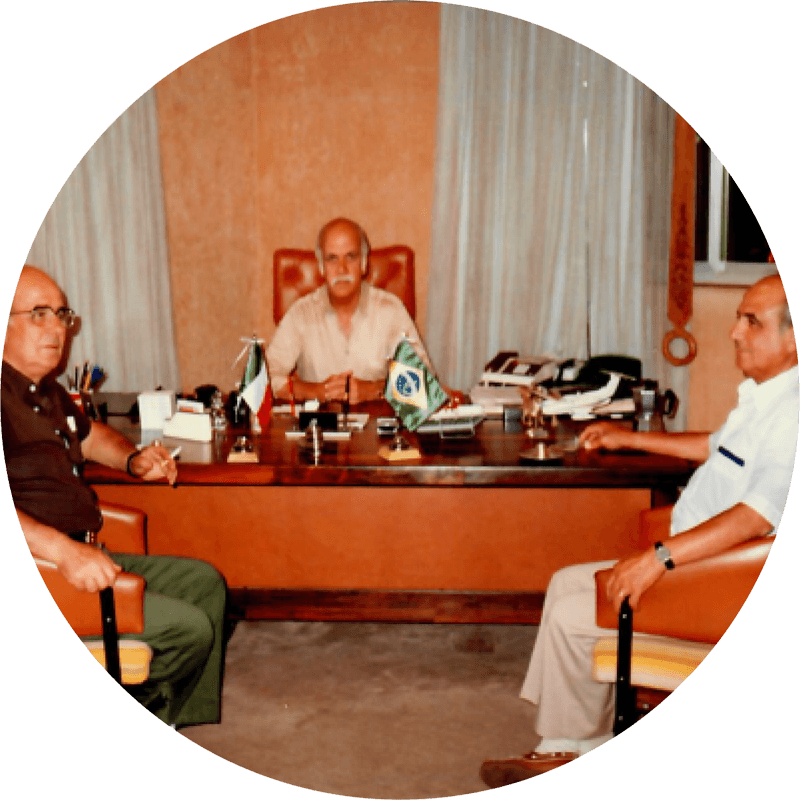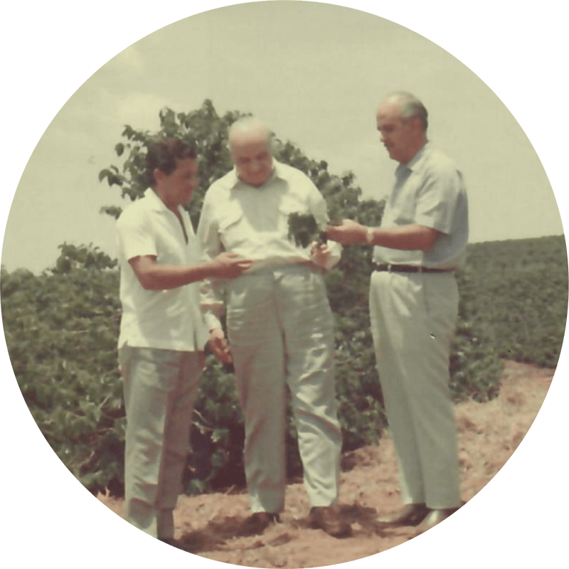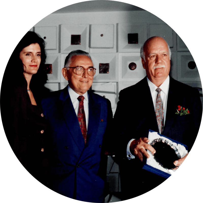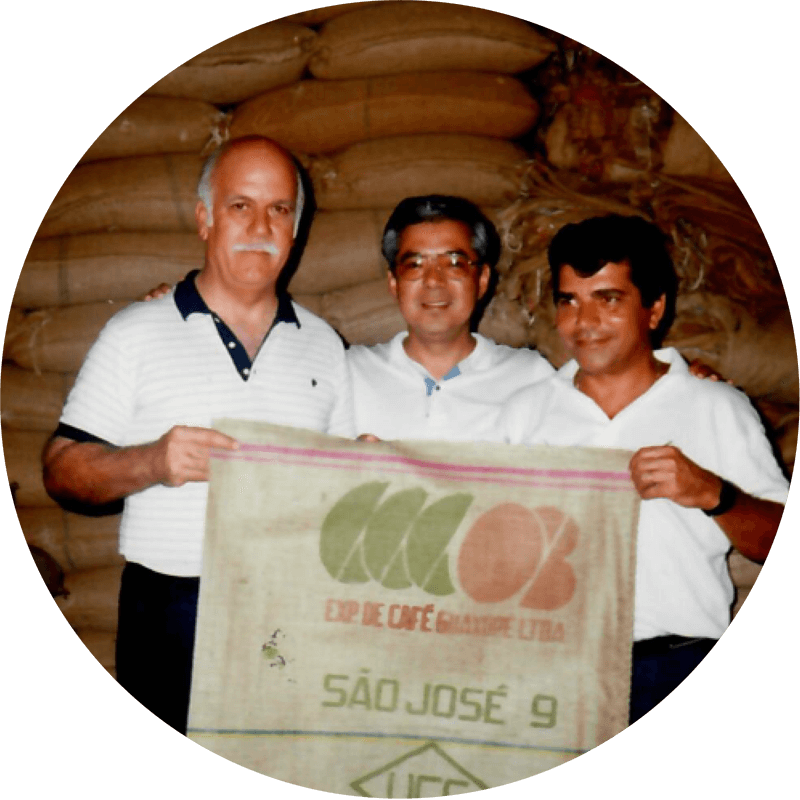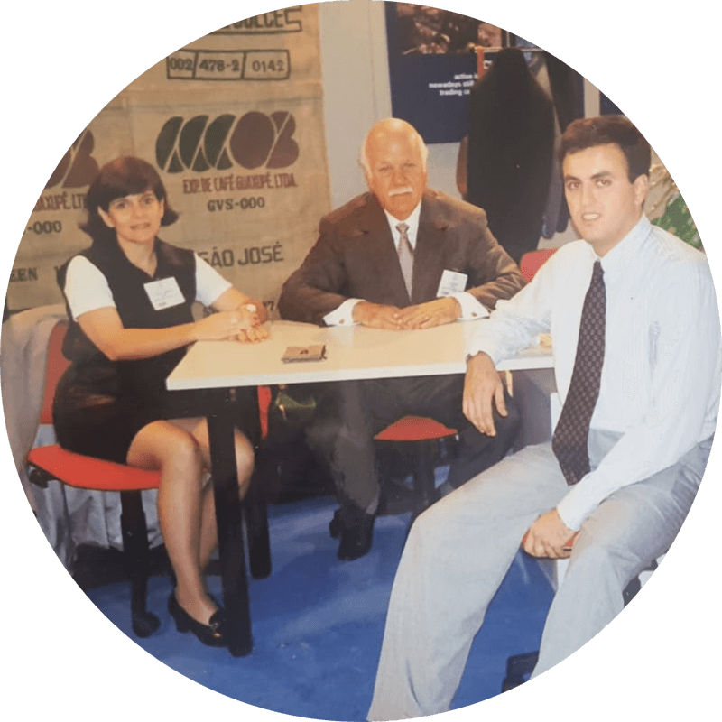 Sr. Olavo com a filha Silvia Helena e Oscar Nasser (trader) no estande da Exportadora Guaxupé Na feira internacional de Veneza-Itália
