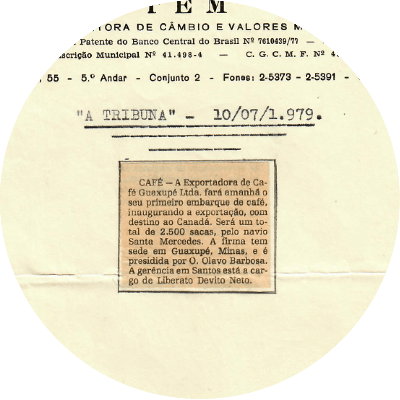 REPORTAGEM DO JORNAL “A TRIBUNA” DE SANTOS SOBRE A 1ª EXPORTAÇÃO