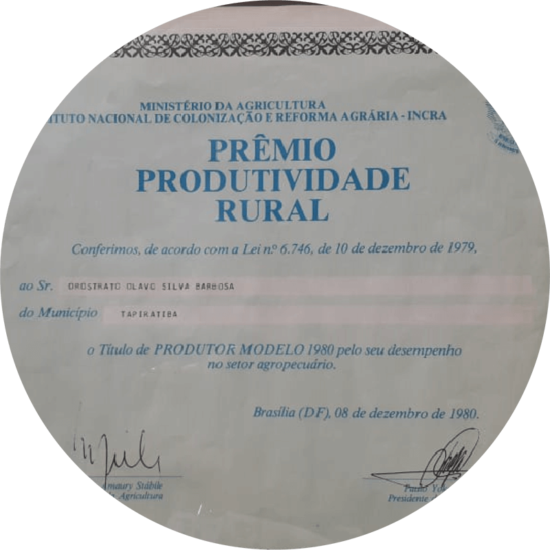 PRÊMIO PRODUTIVIDADE RURAL CONCEDIDO PELO INCRA AO SR. OLAVO BARBOSA