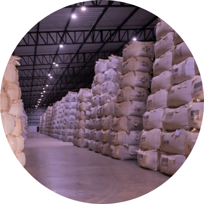 Marco na eficiência da nova gestão: inauguração do Armazém 10, para 300 mil sacas, expandindo a capacidade para 1 milhão de sacas, e dobrando recebimento diário, de 7.000 para 14.000 sacas (big bag, granel e sacaria)