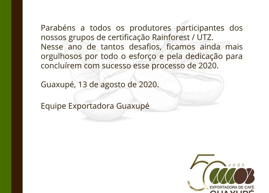 EXPORTADORA DE CAFÉ GUAXUPÉ tem o primeiro grupo de fazendas do Brasil a conquistar a certificação de Agricultura Regenerativa da Rainforest Alliance