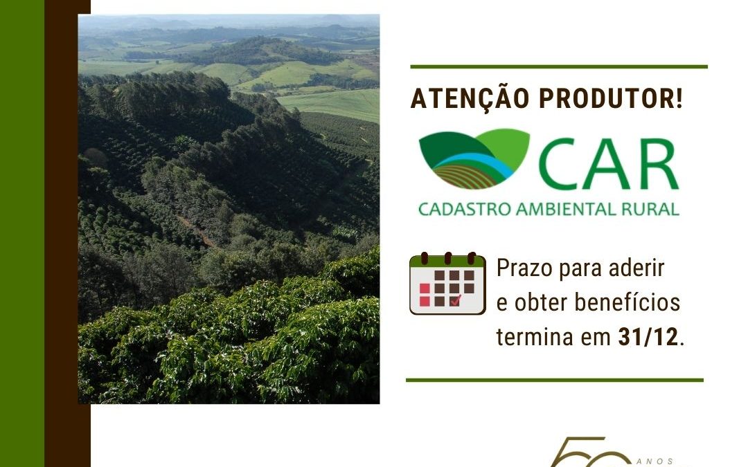 Produtores rurais têm até 31 de dezembro para fazer a adesão ao Cadastro Rural Ambiental (CAR) para que possam garantir os benefícios do Programa de Regularização Ambiental (PRA) que estão previstos no Código Florestal. Não há prazo para o cadastro, mas essa é a data limite para que os agricultores não percam incentivos. Segundo o Governo Federal, a inscrição no CAR é o primeiro passo para a aquisição da declaração de regularidade ambiental do imóvel rural.