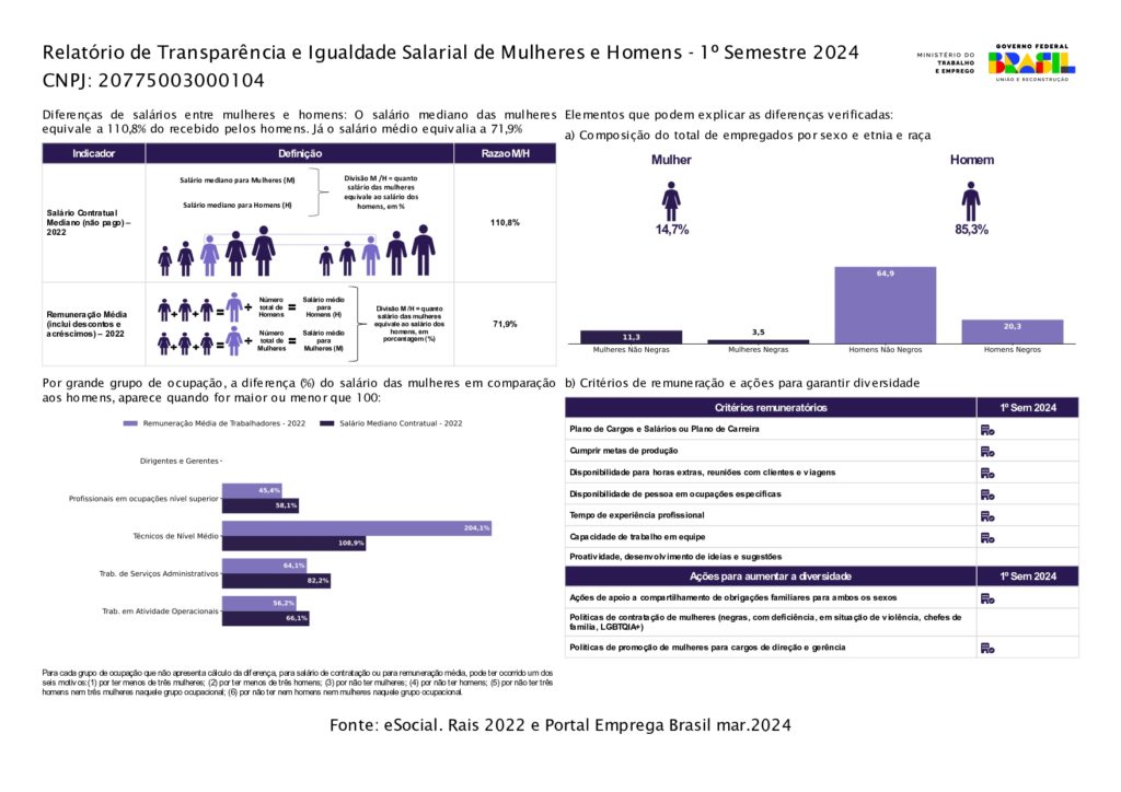 Outro importante ponto a destacar do Relatório é que não foram encontradas discrepâncias entre os salários pagos para ambos os gêneros, considerando as ocupações dos mesmos cargos;